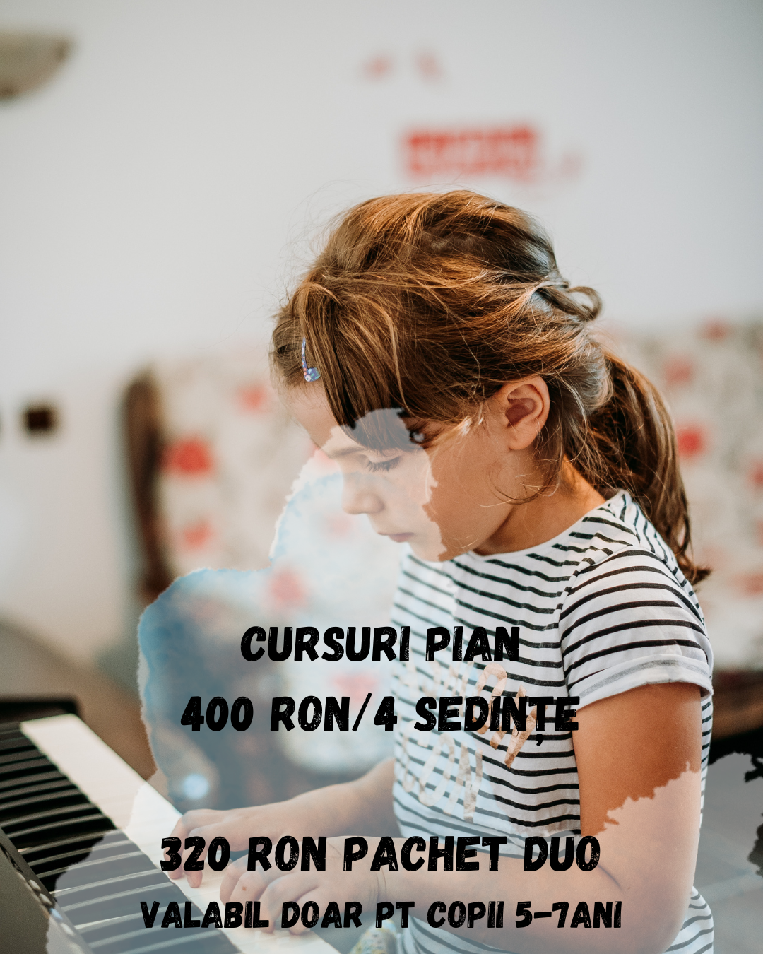 Descoperă magia muzicii la pian! Copiii învață tehnica, citirea notelor și interpretarea pieselor preferate într-un mod plăcut și relaxat. Lecțiile dezvoltă concentrarea, sensibilitatea muzicală și disciplina artistică.