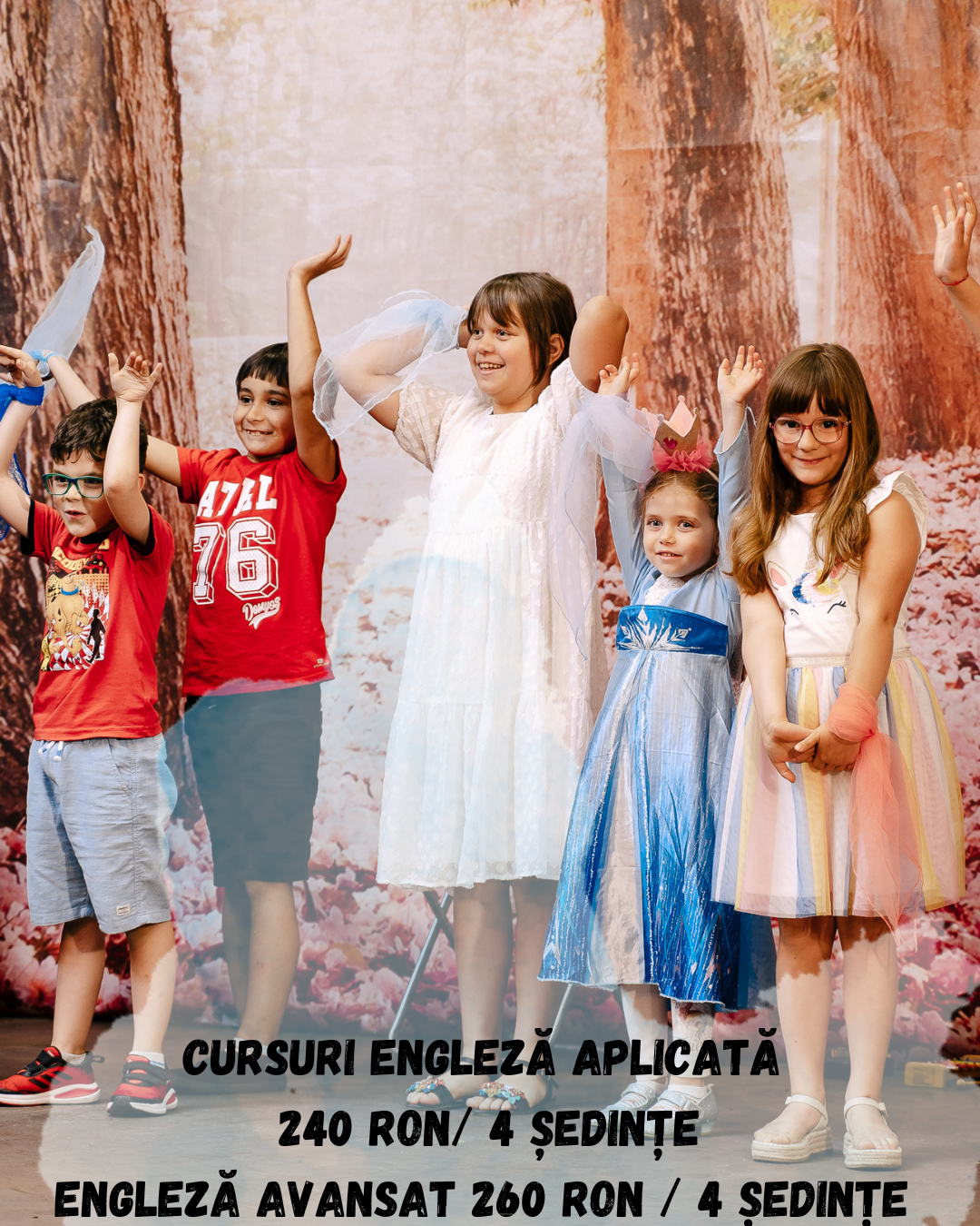 Joacă, imaginație și încredere! Copiii descoperă arta interpretării prin exerciții de improvizație, dicție și expresivitate. Lecțiile îi ajută să se dezvolte emoțional, să comunice mai bine și să se simtă în largul lor pe scenă — și în viața de zi cu zi.